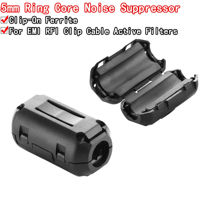 5mm Clip-On Ferrite Ring Core Noise Suppressor For EMI RFI Clip Cable Active Components Filters