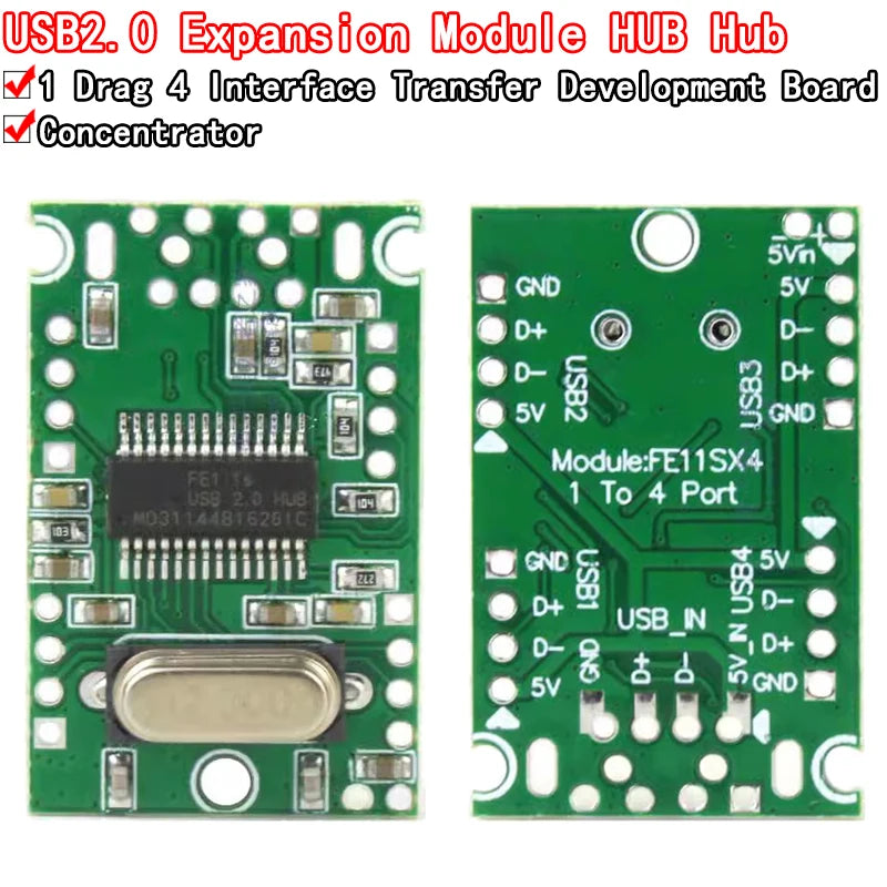 USB2.0 Expansion Module HUB Concentrator 1 Minute 4 1 Drag 4 Interface Transfer Development Board Drive-Free