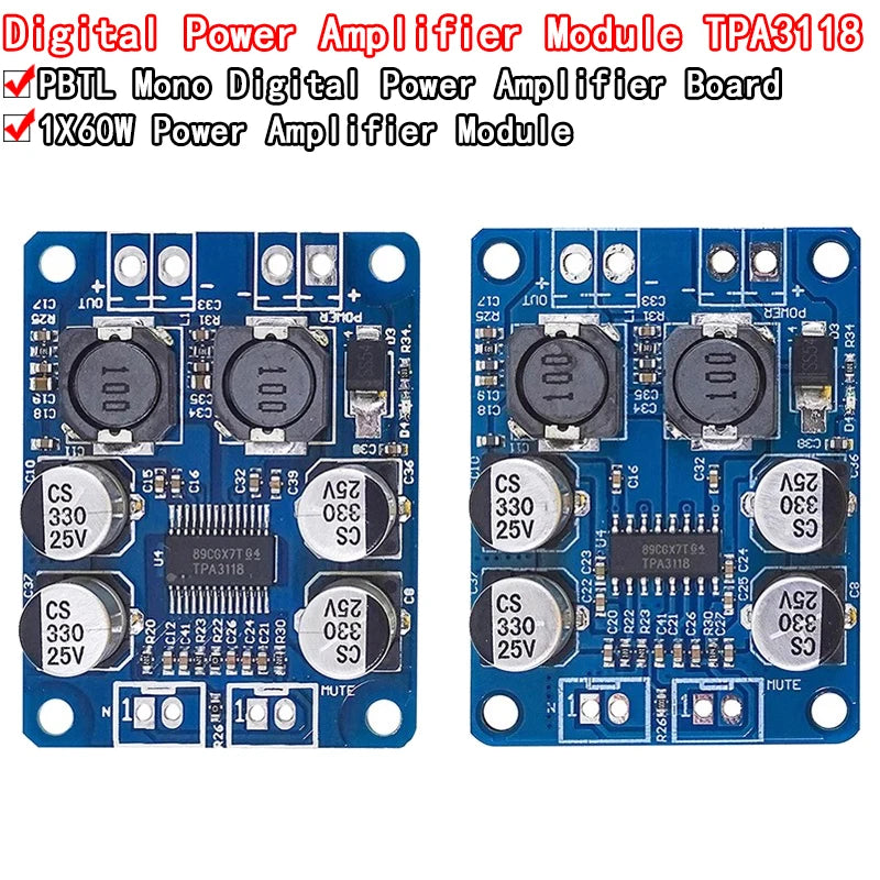 DC 8V-24V TPA3118 60W Mono Digital Audio Power Amplifier Board Amp Module For Arduino