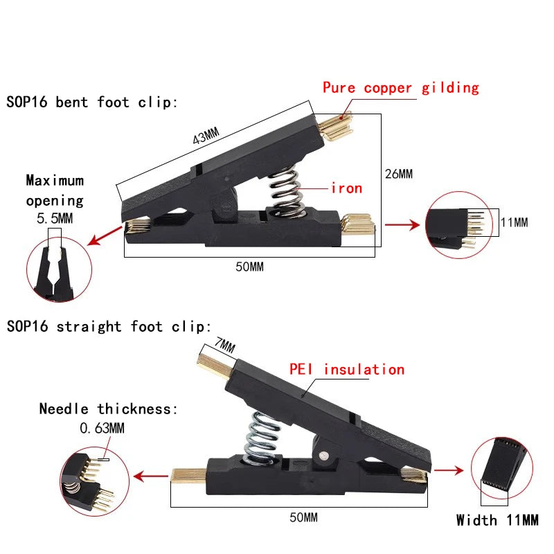 Programmer Testing Clip SOP8 SOP16 SOP SOIC 8 SOIC 16 SOIC8 SOIC16 SOIC8 DIP16 DIP 8 Pin DIP 16 Pin IC Test Clamp without cable
